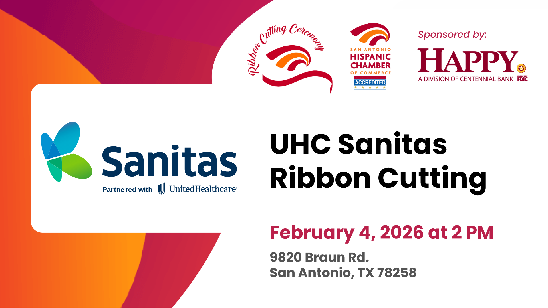 We are excited to celebrate the Grand Opening of UHC Sanitas, a new healthcare destination committed to providing high-quality, accessible, and culturally connected care to our community. This special occasion marks the beginning of an important chapter as UHC Sanitas expands its mission of whole-person care, prevention, and wellness for individuals and families across San Antonio.