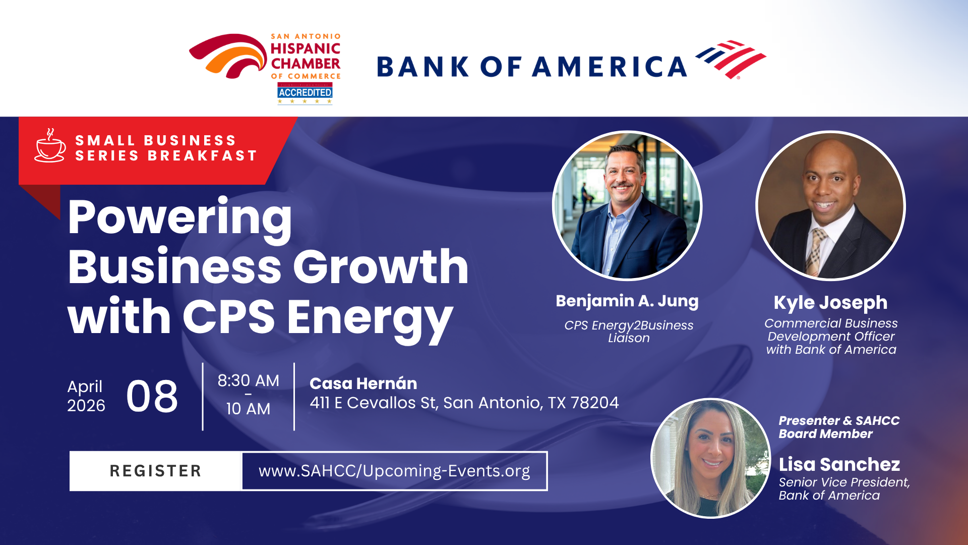 This informative session will feature Benjamin Jung, CPS Energy2Business Liaison, and Kyle Joseph, Commercial Business Development Officer with Bank of America, who will share valuable strategies to help business owners reduce costs and access smart financing solutions.