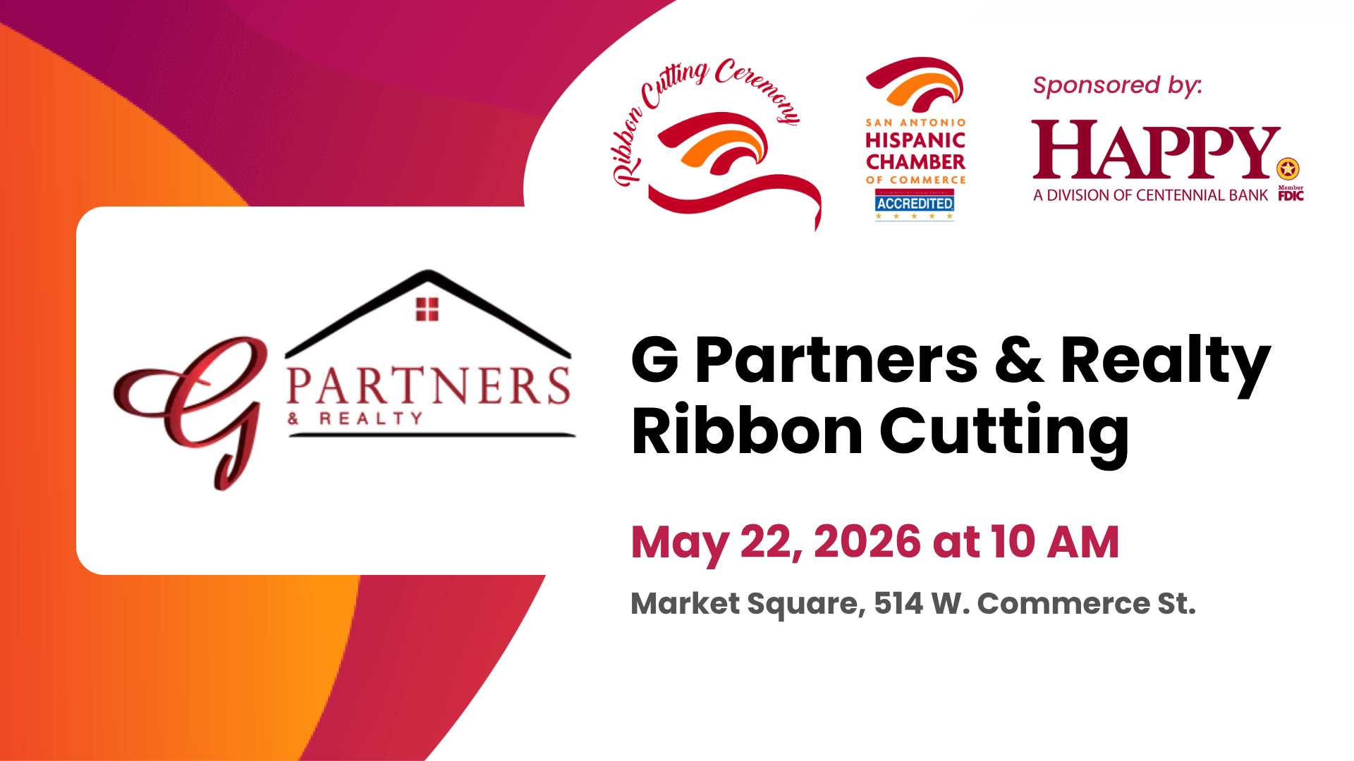 We are proud to celebrate the 15-year anniversary of G Partners & Realty with a special ribbon cutting ceremony, honoring their lasting impact and commitment to the San Antonio community. For over a decade, G Partners and Realty has played a vital role in helping individuals and families find their place to call home, while contributing to the growth and vibrancy of our local economy. Join us as we recognize this incredible milestone and look forward to many more years of success ahead.