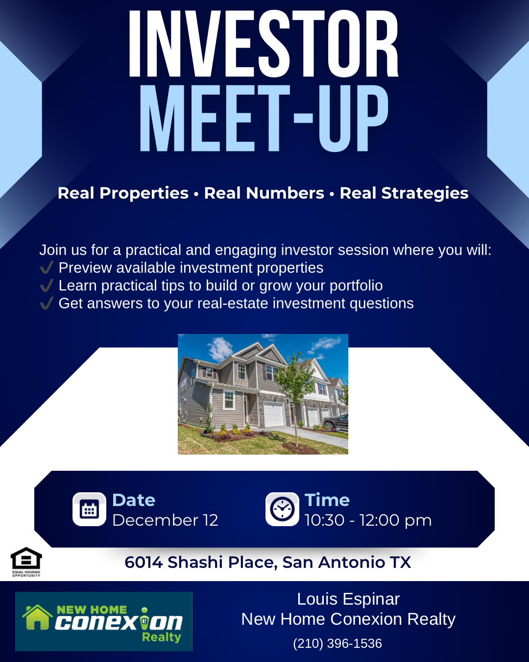 Join us for a dynamic session where we’ll present investment properties, share practical strategies, and offer a mini-workshop on Cash Flow, ROI, and Cap Rates. Whether you're new to investing or growing your portfolio, this session is for you! Attendees can also bring their own listings to share.