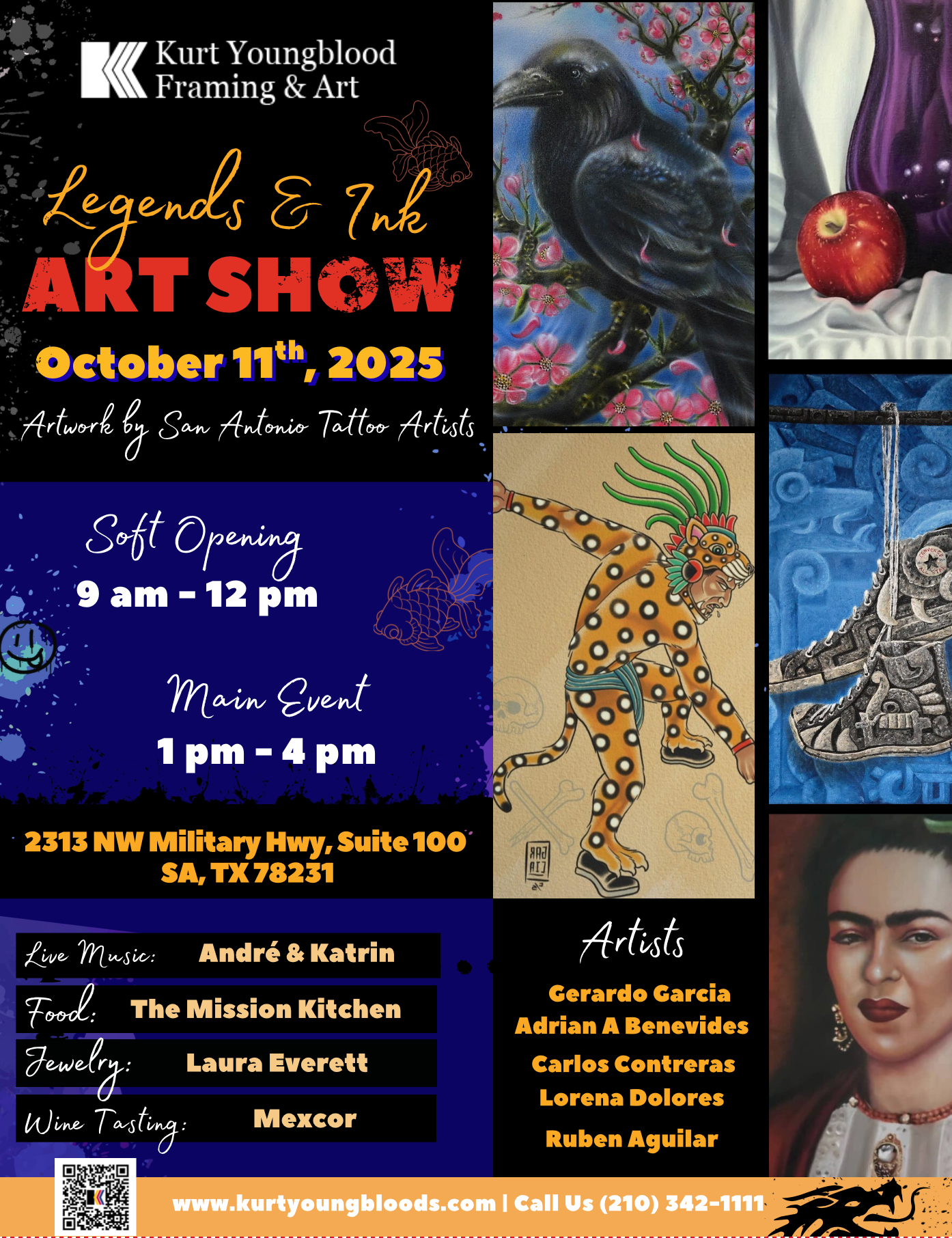 Join us for a vibrant event packed with delicious food, refreshing drinks, live music, and eye-catching art from some of the city's most talented tattoo artists! We can't wait to spotlight five exceptional local artists, each bringing their own unique flair to the world of tattooing. Come support your community and soak in the creativity—it's going to be a blast! Don’t miss out!